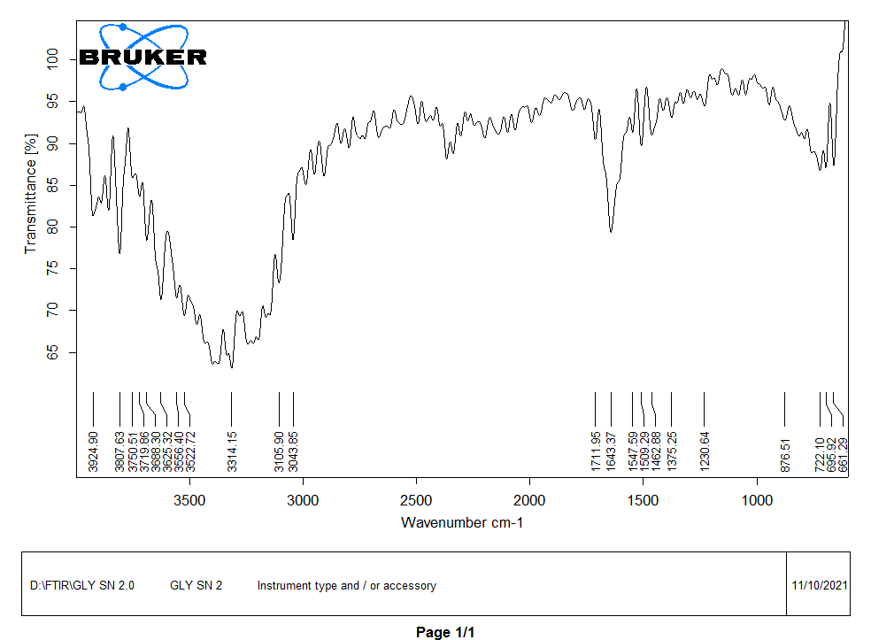 FTIR analysis of isolated Glycyrrhizin and Glyc-NPs was carried out using Perkin Elmer BX II (PerkinElmer, Massachusetts, USA) by scanning the samples in the range of 400 to 4000 cm−1. FTIR study gives information about the chemical interaction between drug and polymer.