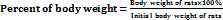 During animal experiments, food intake and body weight were recorded each day; neck circumference and abdominal circumference were measured per 10 d; percent of body weight was calculated according to the formula 1.