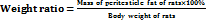 The rats were sacrificed by neck dislocation under anesthesia before the trials ended. The body length (the length from snout to anus) and body weight were measured. Lee's index was calculated according to formula 2. The above-sacrificed rats were dissected, and the peri-testicle fat and liver tissue were collected, soaked in normal saline and blotted to dry on filter paper. The weight ratio was calculated according to formulas 3