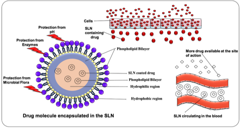 Fig. 1: The encapsulation of the drug in the SLNs increases the availability of the drug at the site of action (Source: Authors)
