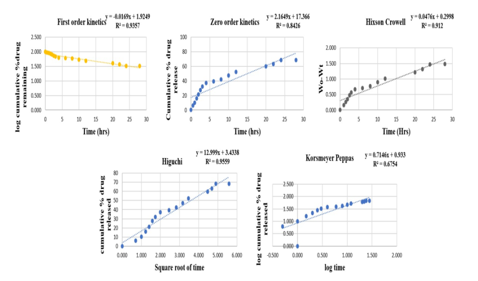 | Models | Zero-order | first-order | Korsmeyer-peppas | Higuchi | Hixson-crowell |