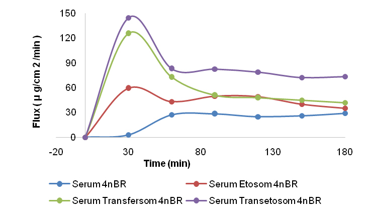 Fig. 10: Flux of active substance 4nBR from various forms of inner vesicles serum various vesicle forms