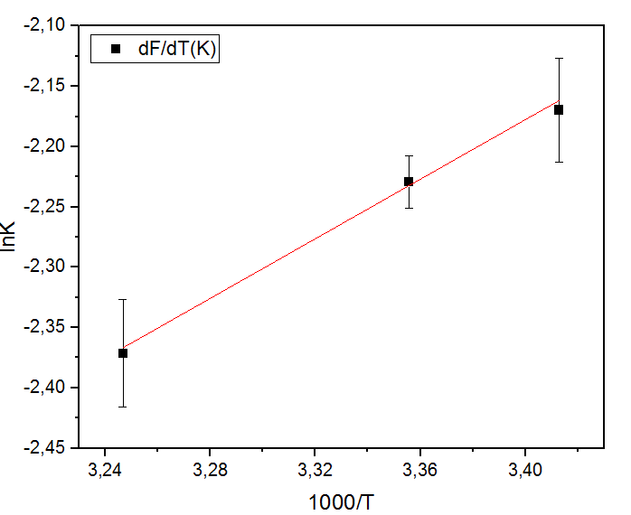 Where-k is the reaction rate constant, min-1; lnA-a constant (lnA=0); Ea-activation energy,