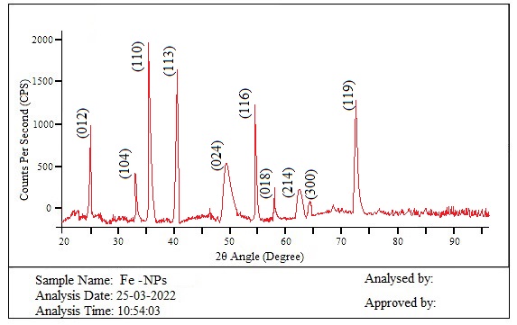Fig. 2: Structural characterization of synthesized iron nanoparticles