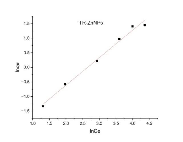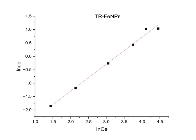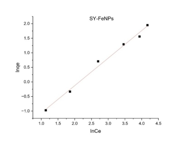 Where KF represents Freundlich constants related expressed in mg/g and n represents adsorption favorability