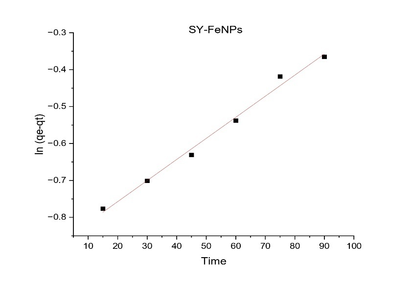 To gain insights into the dynamics of dye adsorption by synthesized nanoparticles, we conducted a kinetic study employing both the Lagergren pseudo-first-order and chemisorption's pseudo-second-order kinetics models. The Lagergren pseudo-first-order equation as follows: