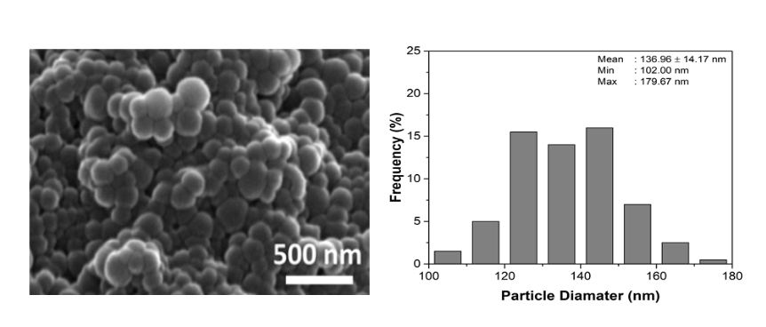 Based on the results shown in fig. 1, it can be seen that the morphology of BSA-NP cholecalciferol shows a rounded and smooth surface, monodisperse, and smooth texture. This is by previous research stated that the morphology of albumin nanoparticles and drugs with albumin nanoparticle carriers is spherical [30, 36].