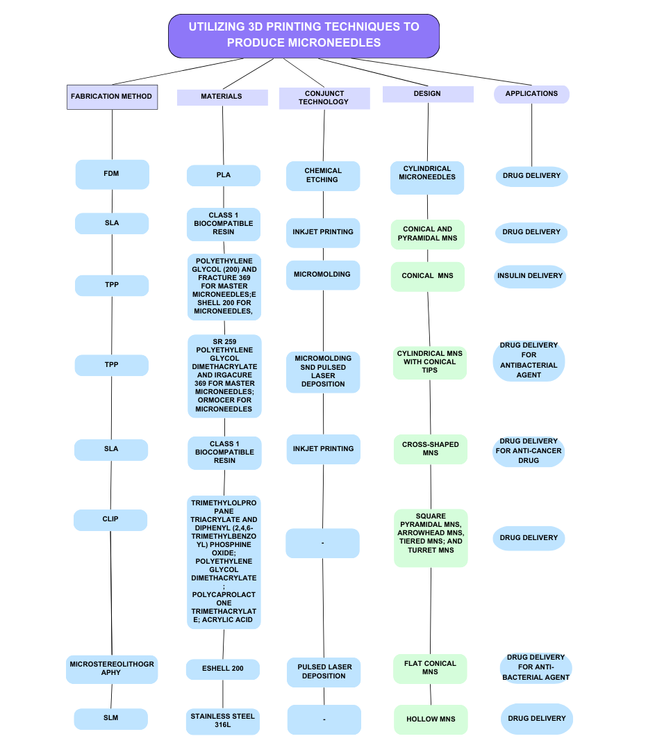 Elahpour N, Pahlevanzadeh F, Kharaziha M, Bakhsheshi Rad HR, Ramakrishna S, Berto F. 3D printed microneedles for transdermal drug delivery: a brief review of two decades. Int J Pharm. 2021;597:120301. doi: 10.1016/j.ijpharm.2021.120301, PMID 33540018.