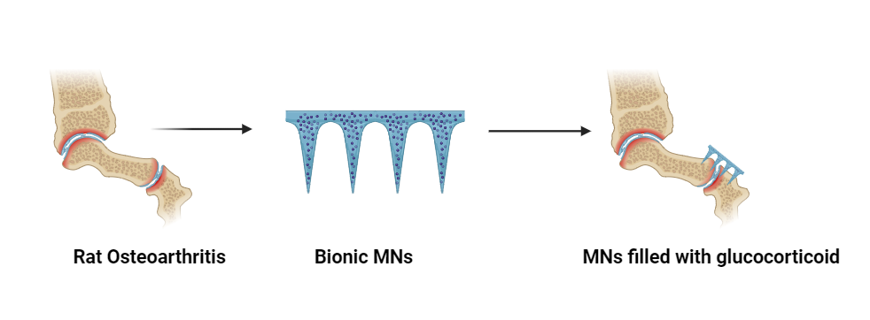 Fig. 9: Bionic MNs filled with glucocorticoid, there was a significant decrease in swelling and inflammation in their knee joints [3]