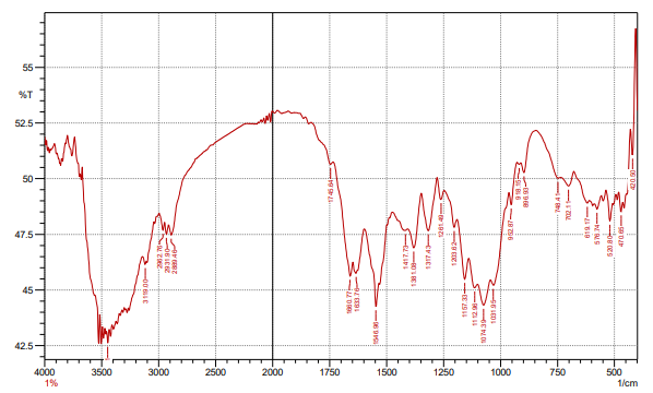 Fig. 2: Nano chitosan 1% with FTIR spectra of Portunus pelagicus shell waste