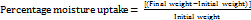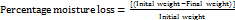 Moisture loss is determined by placing the pre-weighed film in the desiccator contains anhydrous CaCl2 for three days. After three days, films were reweighed and the difference in weight of the film comparison with the initial weight was calculated as moisture loss by using the following formula as below.