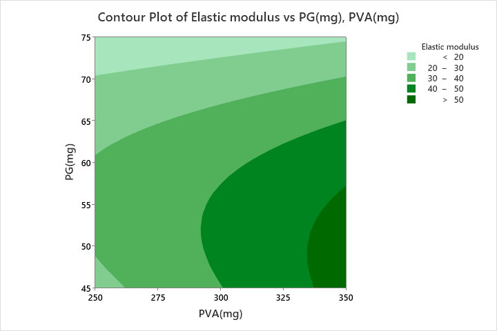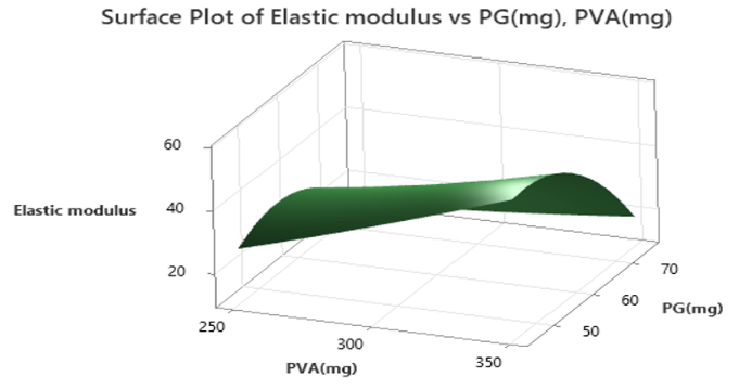 Y3= elastic modulus = 38.2131+8.3467(PVA)-12.4883(PG-10.9706(PG)2
