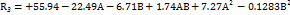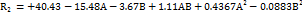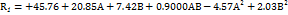 The polynomial equations include first-order main effects, coefficients for intercept, interaction effects, and higher-order effects with negative and positive signs indicating antagonistic and synergistic effects of A and B on R1, R2, and R3. The factor effects and p-values result of the responses are shown in table 4.