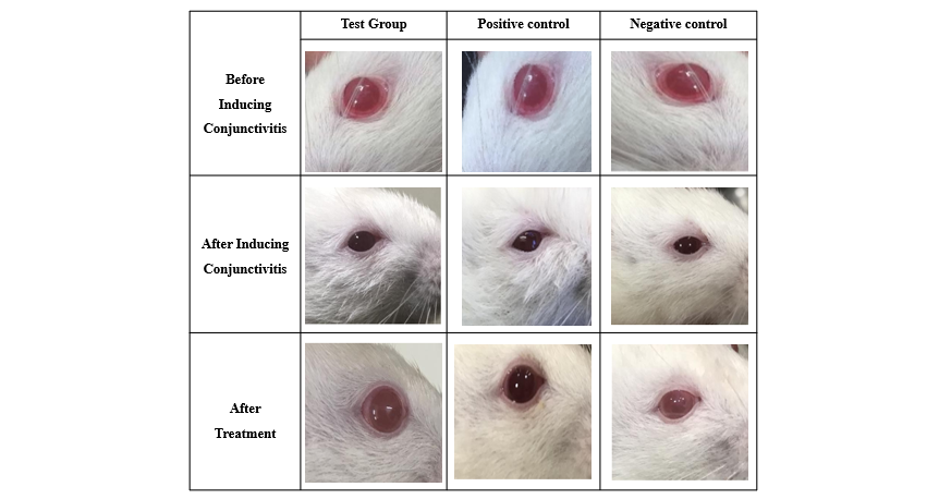 Fig. 4: Animal eyes induced with allergic conjunctivitis before and after treatment