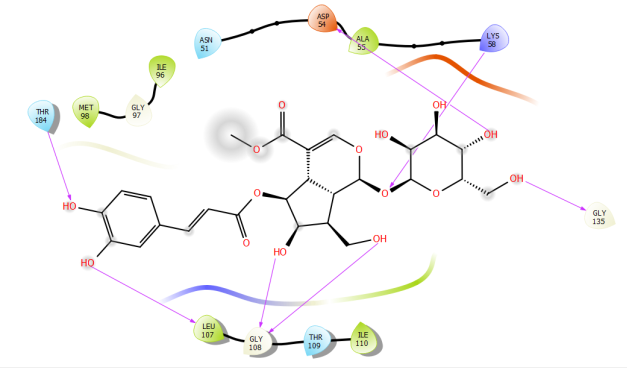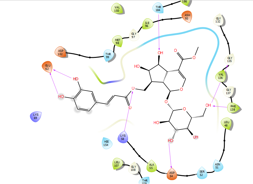 | 5459045 (Arbortristoside-B) | -7.798 | -64.629 | -35.33 | LYS58 ASP54 GLY135 THR184 LEU107 GLY108 |