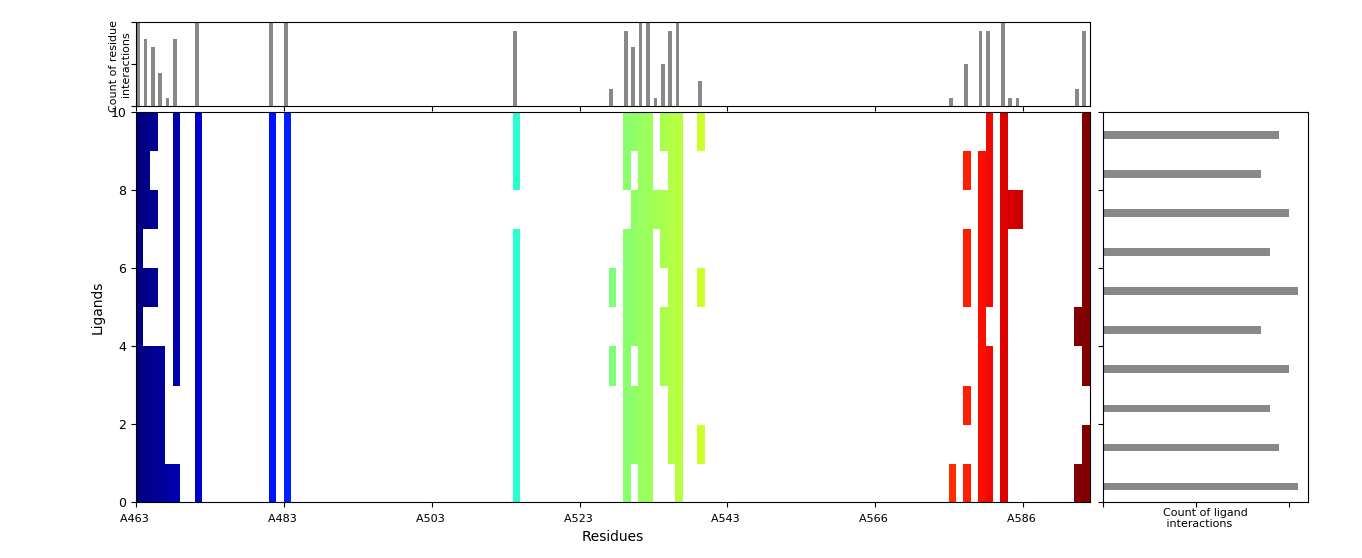 H-bond with hydroxyl H-bond with hydroxyl H-bond with Nitrogen H-bond with Sulfonyl oxygen Salt bridge with amine H-bond with Sulfonyl oxygen Salt bridge with amine |