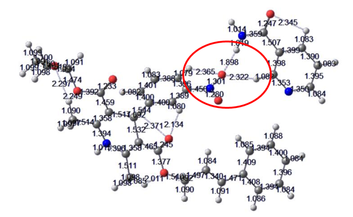 Fig. 8: Optimized structure of cilnidipine-nicotinamide cocrystals with intermolecular hydrogen bonding