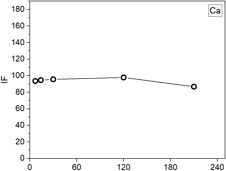 As the homogeneity of the raw material increased, an increase in concentrations was shown for K, Ca, Mn, Fe, Zn, and Cu, and a decrease in the concentration of S. Also, stability tests were carried out for 210 d (fig. 7–13).