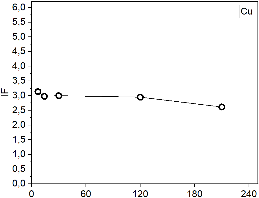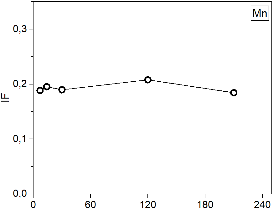 Also, difference graphs were obtained (fig. 4-6) for the GZ-AAS and ICP-MS techniques by conversion using the formula: Cx=Cgz-AAS/Cxrf x Cn. Where Cx is the sought concentration, Сgz-aas is the concentration obtained by the GZ-AAS technique, Cxrf is the concentration obtained by XRF, and Cn is the concentration obtained by X-ray diffraction at the corresponding stage of sample preparation (n = 1, 2, 3).