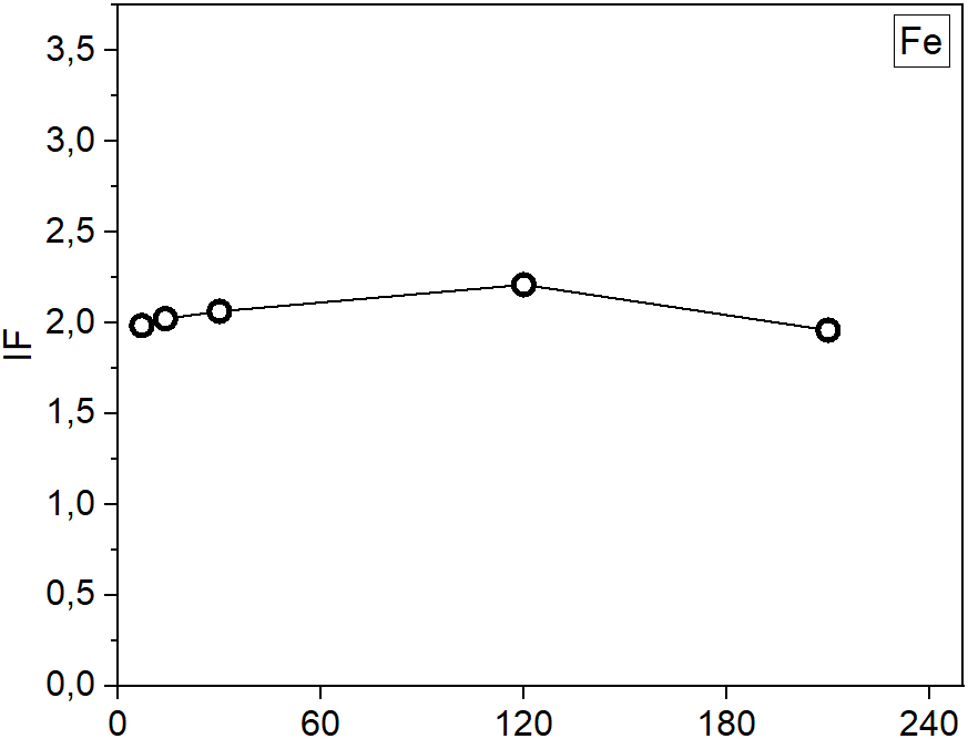| Fe | 426 | 17 | 271 | 6 | 317 | 1 | 326 | 18.9 | 730 |
