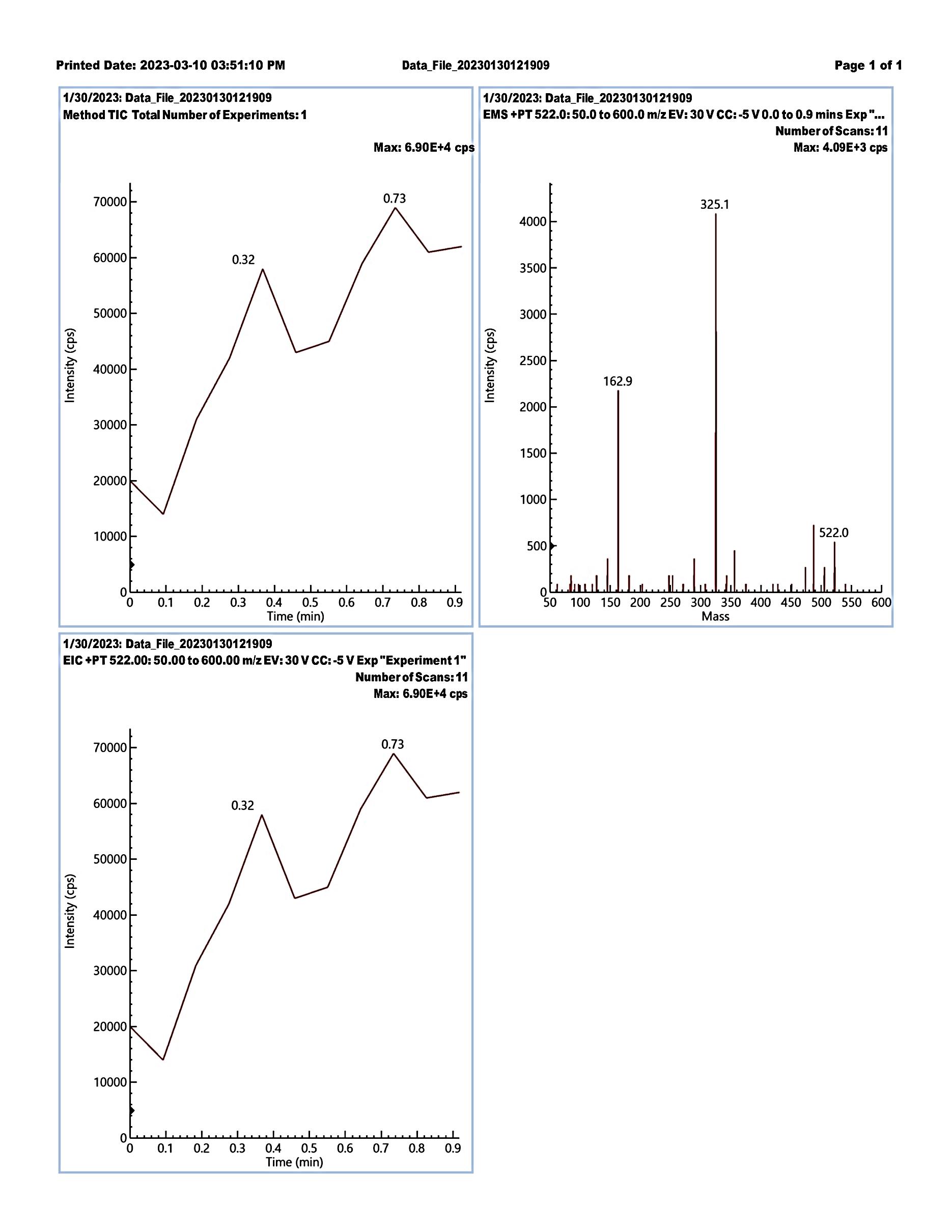 Perkin Elmer QSight LX-50 UHPLC equipment was used for method development and validation with electrospray ionization interface, with programmable injection volume from 0.1-100 μl loop (depending upon mode and loop). A QSightTM LX-50 Autosampler, QSightTM LX-50 Oven, QSightTM LX-50 Pump, and QSight 420 Mass spectrometer, and for system control, data acquisition, and integration, SIMPLICITY3Q data station was utilized.