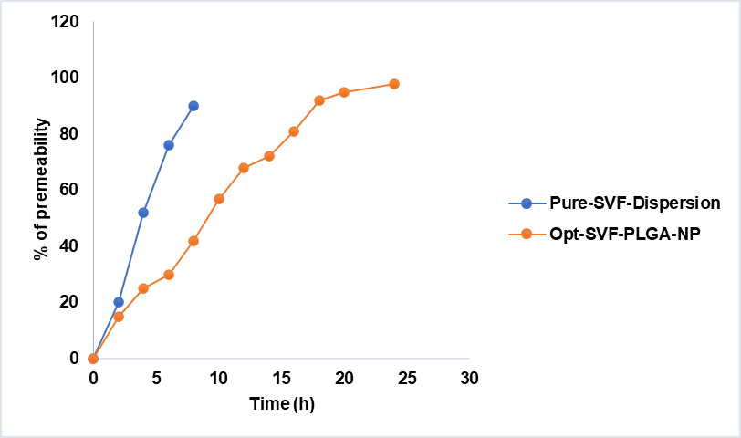 Fig. 7: In vitro drug release of Opt-SVF-PLGA-NP and pure-SVF-dispersion