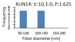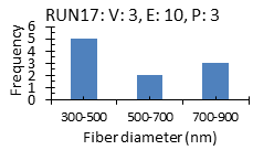 The electrospinning process was achieved on the 18 runs listed in table 2, and resultant fibres were removed from the foils and collected in a sealed container. The electrospun nanofibres were investigated to determine the shape and diameter of fibres and the EE% of Voriconazole in the polymers. The results of all responses are illustrated in fig. 1 and listed in table 2.