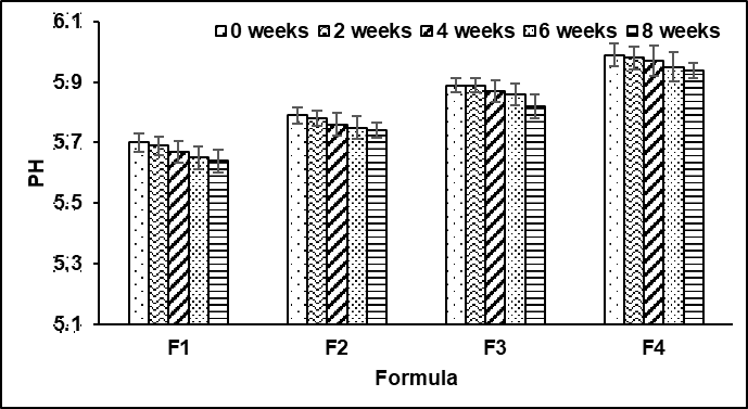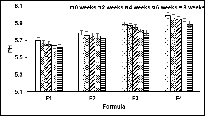 Fig. 2: The pH of the films after saving 2 mo in 28±2 ℃. Data in mean±SD (n=6)