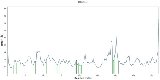 Fig. 6: RMSF diagram for compound 1/1E2D complex. RMSF-root mean square fluctuations