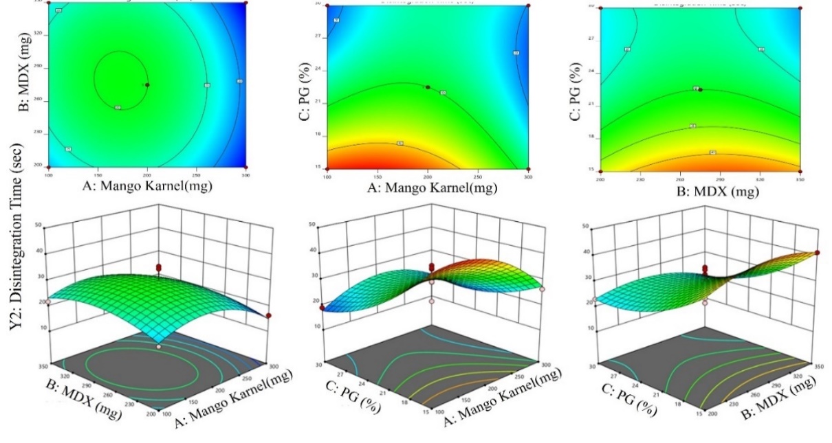 | Y2: Disintegration Time (Sec) | 15.34±1.13-46.35±1.24 | ||