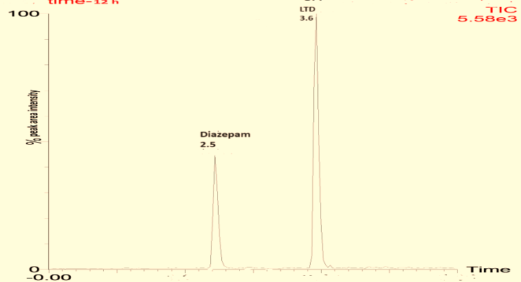 No interference from endogenous substance was observed at the retention time of LTD and Diazepam (IS).