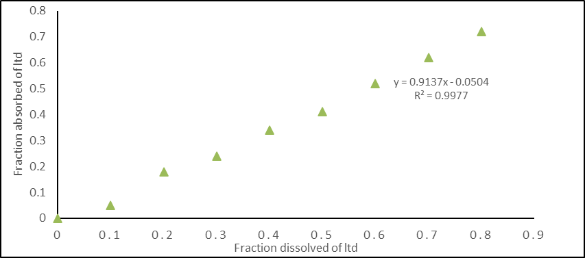 Fig. 8: Relationship between the LTD fraction dissolved in vitro and the LTD fraction absorbed in vivo for buccal film F6