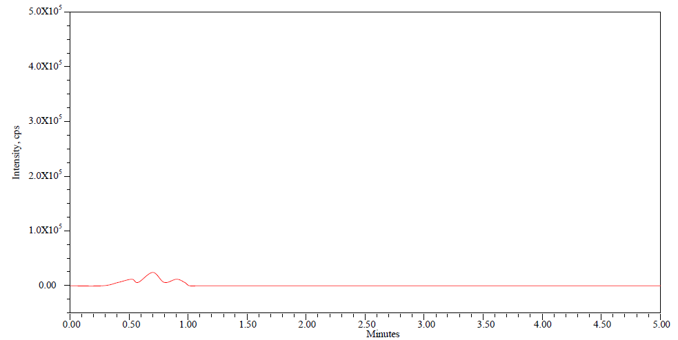 Chromatographic separation, using Symmetry C18 (150 x 4.6 mm, 3.5 micron) columns, was administered in isocratic mode at room temperature. A mobile phase mixture of 0.1 percent Formic acid and acetonitrile at 80:20 v/v with a flow of 1.0 ml/min was used. 10 µl was the injection rate and the run time was 5 min.