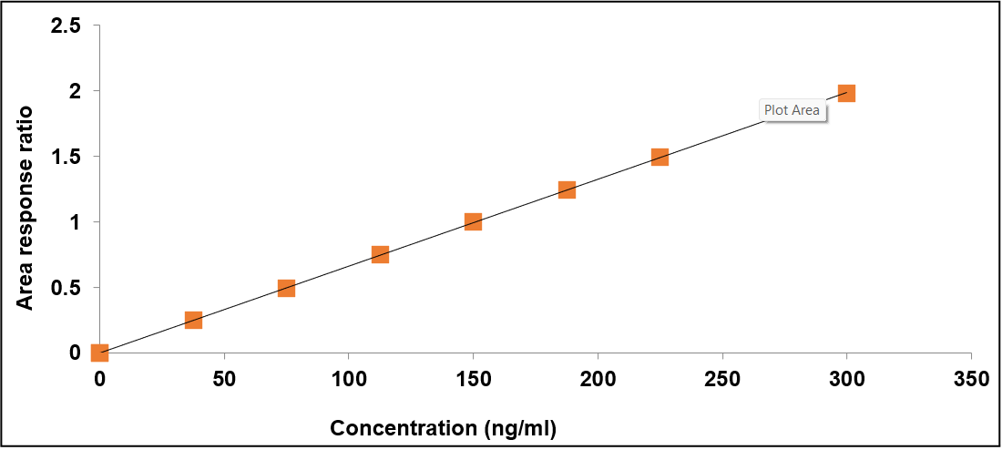 For standard preparation 200 µl of plasma was taken and 300 µl of Acetonitrile (ACN) into a 2 ml centrifuge tube and 500 µl of standard stock solutions and 500 µl of IS and 500 µl of diluents were added and vortexed for 10 min. These samples were further subjected for centrifuge at 4000rpm for 20 min. Collect the solution and filter through 0.45µ nylon syringe filter and the clear solution was transferred into a vial and injected into a system.