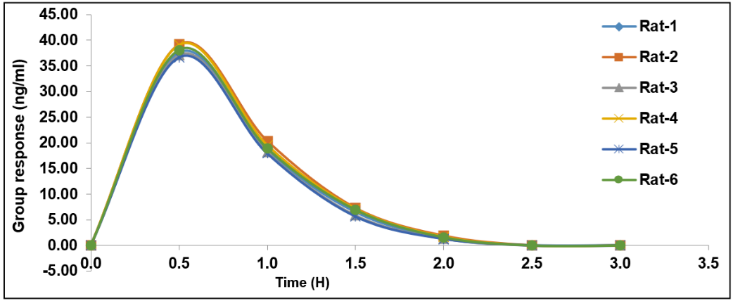 In vivo pharmacokinetic studies, 6 healthy white New Zealand rats (app. 250 g) were obtained from Biological E Limited, Hyderabad, India. The protocol of animal study was approved by the institute of animal ethics committee (Reg. No: 1074/PO/Re/S/20/CPCSEA).