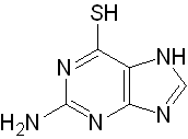 Thioguanine (TG) is a pale yellow, crystallised powder that is essentially insoluble in water, alcohol, and chloroform but dissolves in dilute alkali hydroxide solutions. It has a molecular weight of 167.2 g/mol and a molecular formula of C5H5N5S. The TG chemical structure [3] is shown in fig. 1.