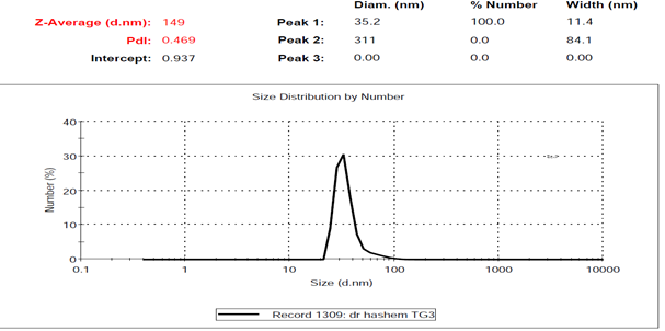 The particle size, polydispersity index, and zeta potential of TG-NLCs were determined using a Zetasizer-ZS instrument manufactured by Malvern Instrument (UK). Subsequently, measurements were taken for the mean of particle sizes, polydispersity index, and standard deviations of zeta potential. To prevent the agglomeration of particles, measurements were conducted repeatedly [16].