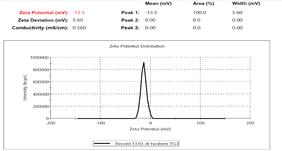 Fig. 4: Illustrates the zeta potential of the chosen formulation, which provides insight into the electric charges exhibited by the produced nanomaterials