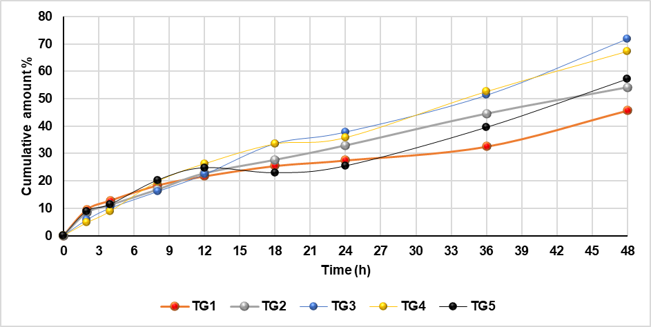 Table 4: The cumulative amount of TG (TG01-TG05) in phosphate buffer with a pH of 7.4, at a temperature of 37±0.5 °C