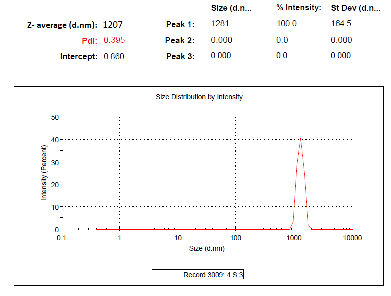The particle size and zeta potential of ethosomes were examined using a zeta sizer, and the results are displayed in table 2. All experimental trials had particle sizes that ranged from 706 nm to 1433 nm.