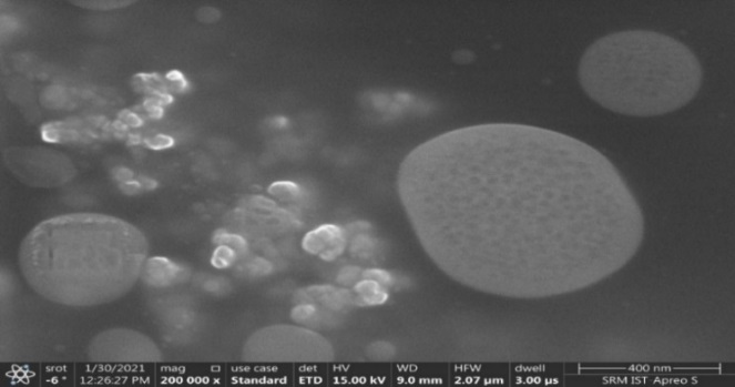 The Ethosome vesicles were viewed through Quanta FEG. Images were captured on a scanning electron microscope after the materials were fully dried. (Thermoscientific Apreo S)