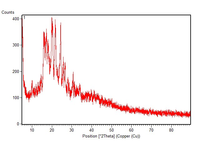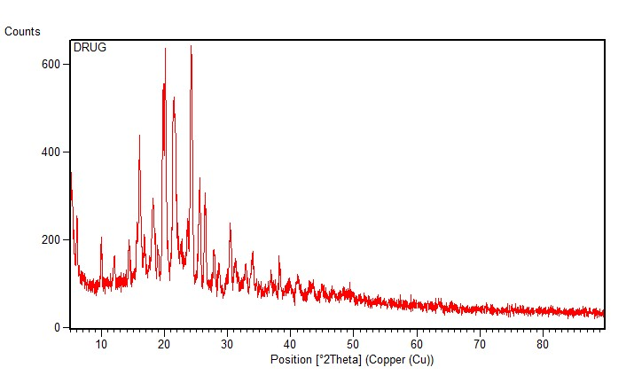 An X-ray diffraction was used to conduct XRD study of terbinafine formulation. The samples were kept in a sample container, and the powder X-ray diffraction pattern was captured using an X-ray tube and a source of two 10-90° 2.2 KW copper anodes. The sample was checked with a lynx-eyed detector before being filtered with a Ni filter (Bruker D8Advance).
