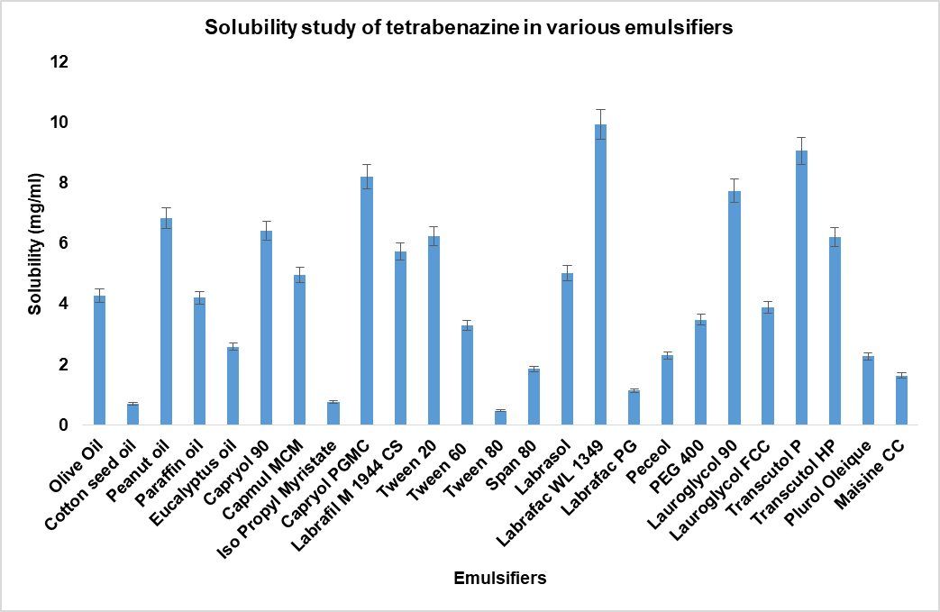 The authors are thankful to Synnat Pharma Pvt. Ltd., India, for providing a gift sample of Tetrabenazine and Gattefosse, India, for providing gift samples of emulsifiers. Authors are also thankful to Central Instrumentation facility of Lovely Professional University for providing analytical support.