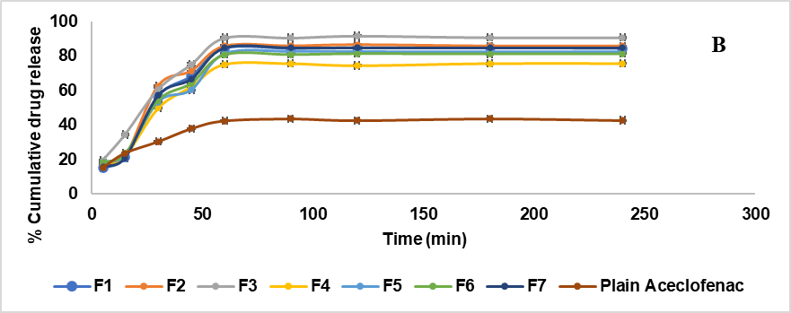| Plain Aceclofenac | 12.22±0.4 | 20.10±0.3 | 55.20±0.4 | 58.40±0.3 | 58.74±0.3 | 58.58±0.3 | 58.68±0.3 | 58.69±0.3 | 58.55±0.3 |