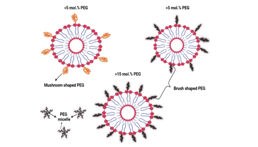 Stealth liposomes and immuno-liposomes are avoid being detected by the immune system. Conventional liposomes, particularly ones that are injected into the body, are not stable for extended periods of time. Stealth liposomes are sterically stabilized, gained attention for its long circulating half-life. PEGylated liposomes are more extensively studied for its potential effect in delivering cancer therapeutics [1-4].