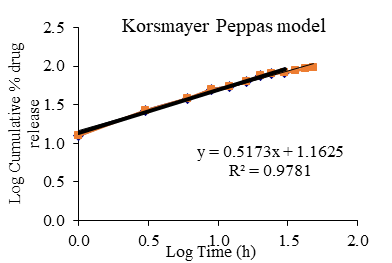 Fig. 16: Kors Mayer Peppas model drug release kinetics