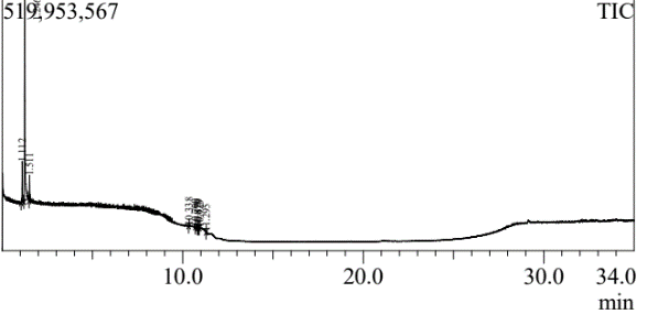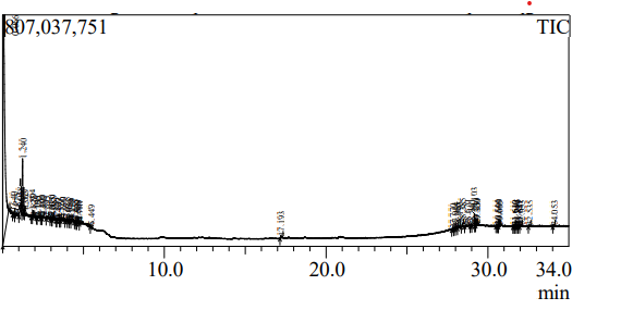 The initial column temperature was 35 °C, with a 3-minute hold time. The temperature was set to rise at an 8 °C/min rate, with a final temperature of 280 °C. 1l of the sample was injected into the port, vaporized, and moved down the column with helium as the carrier gas at a flow rate of 1 ml/min. At 70 eV, the MS Spectrum was captured. Following the separation in the column, the components were identified and analysed further using the FID. The compounds were identified by comparing the spectrum of unknown compounds to the spectrum of known compounds in the National Institute of Standards and Technology (NIST) mass spectral 2.0 structural library to determine their names, molecular weight, and structure.