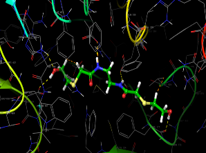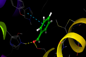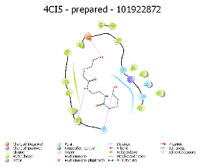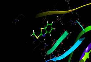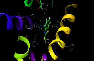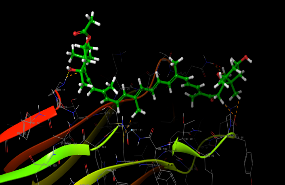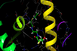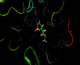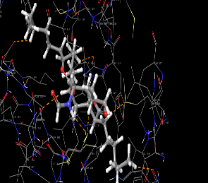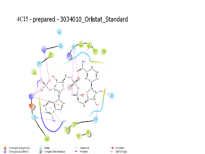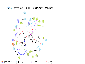 Around the active site residues, a 10Å x 10Å x 10Å receptor grid was created for anti-obesity proteins. Initial docking of orlistat with anti-obesity proteins docked with significant docking score. The best lead PPAR-γ (ID: 4CI5) showed the lowest docking showed score of-7.716 kcal/mol (Figure).