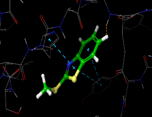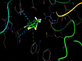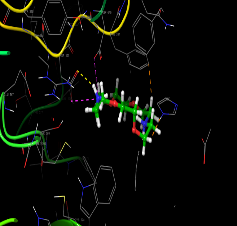 Lcu 229 formed two hydeogen bonds with ligand. The active residues such as The active site residues such as His-121, Tyr-127, Glu-205, Lcu-229, Ser-289, Ser-299, Glu-295, Ser-299, His-323, Ilu-326, Icc-440, His-449, Tyr-473 formed in molecular interactions were also well correlated with the active site residues of native co-crystal structure of PPAR-γ (PDB ID: 4CI5) and the residues Phe-226, Pro-227, Ala-292, Tyr-327, Met-329, Leu-333, His-449, Leu-453, Tyr-473 were around the active site (within 4 A˚) found to be present involed in van der Waals interactions with ligand.