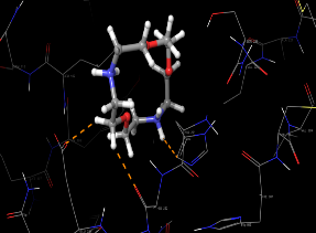 Analysis of docking results revealed that ligand interaction (Aminocyclitol) with protein PPAR-γ docking complex showed good binding affinity, binding orientation, pharmocological properties. The formation of hydrogen bond along with the residues involed in van der Waals interctions were also highly important for the stability of the docking complex. Hence, lead-1with better docking score (6.709kcal/mol). Hence, the ligands were proposed as the best antagonist to block PPAR-γ of, which plays major role in drug development.